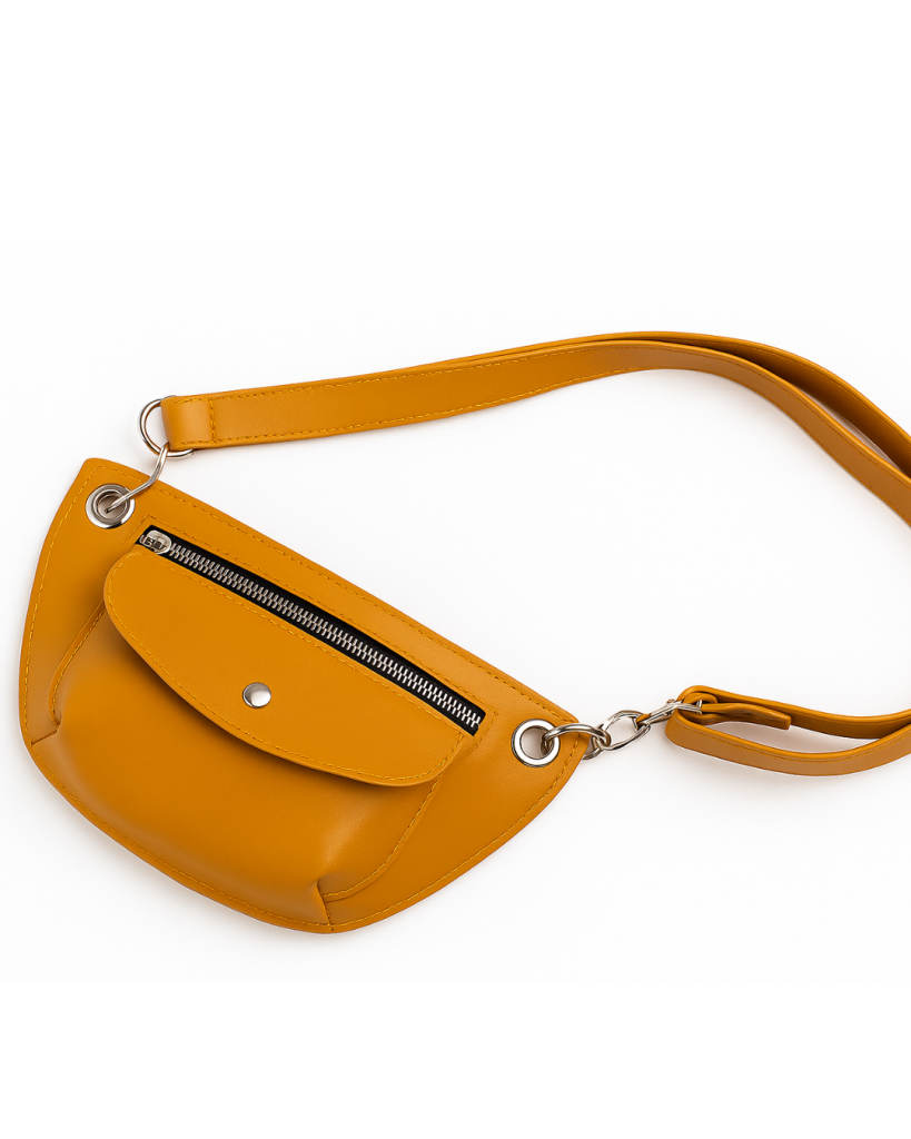 Цей модний аксесуар виконаний із екошкіри , що забезпечує не тільки зовнішній вигляд, але й довговічність виробу. Бананка гырчичного кольору надасть вашому образу стилю, підкреслюючи вашу індивідуальність.