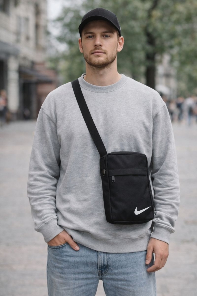 Чоловіча спортивна сумка через плече Nike – хороший аксесуар для чоловіків. Зручний та практичний, він має регульовану довжину ременя для найкращого комфорту. Розміри сумки складають 22x19x5 см, у неї три відділення для зручного розташування різноманітних речей. Матеріал – надійний поліестер, що гарантує якість та тривалу службу."