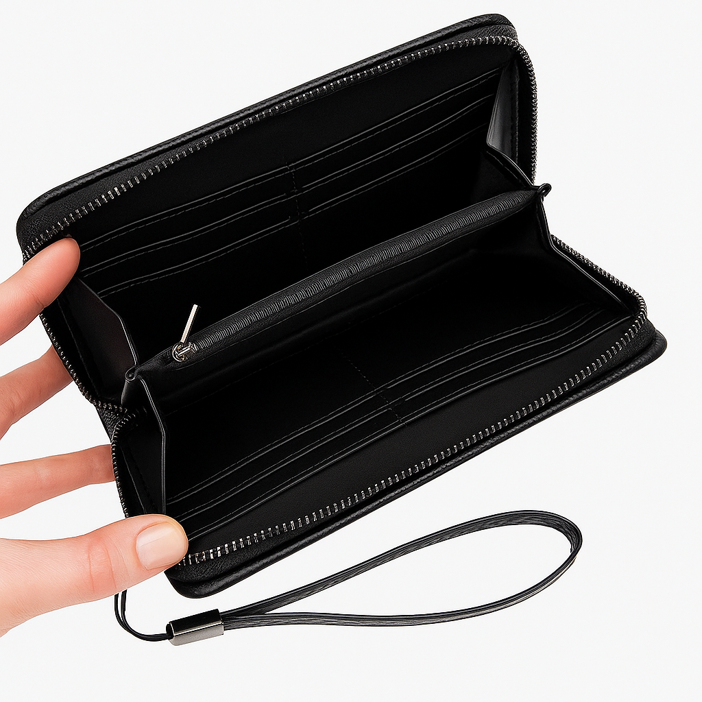 Стильний і зручний чоловічий клатч-портмоне зроблений з екошкіри. Розміри 20х12 см. Застібається на блискавку. В комплекті йде знімна шлейка. Простий і елегантний вибір для організації грошей та карт. Без коробки.