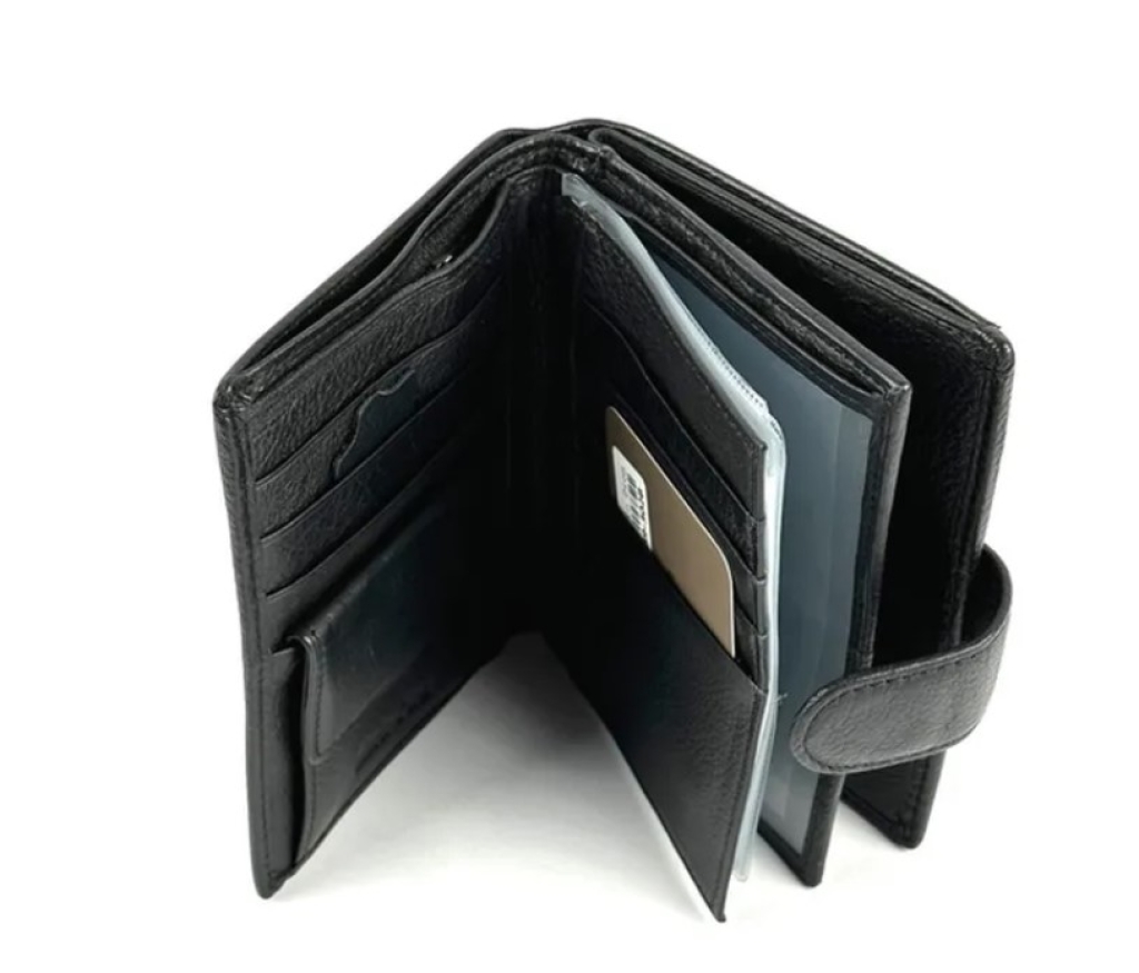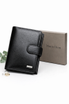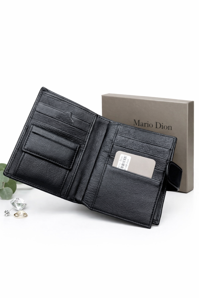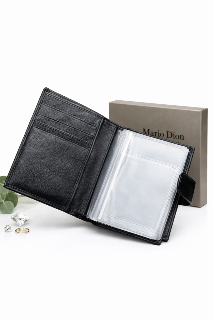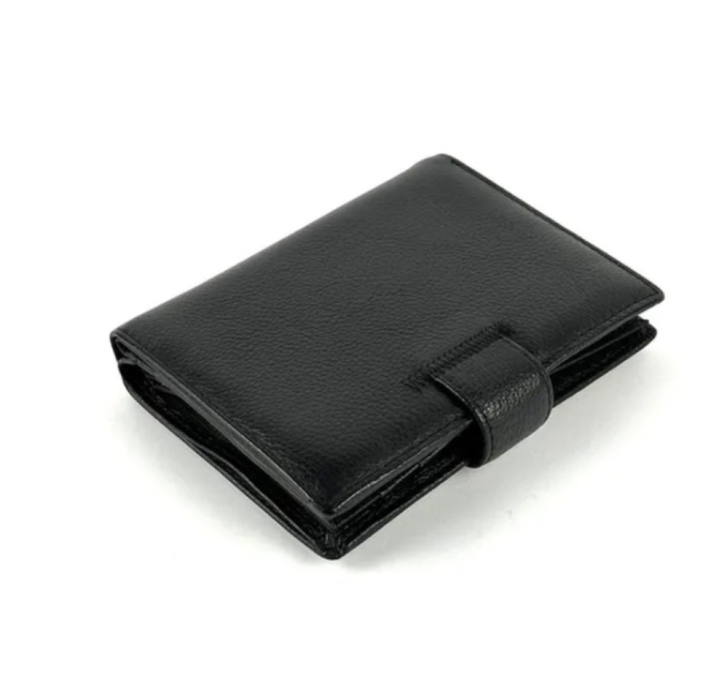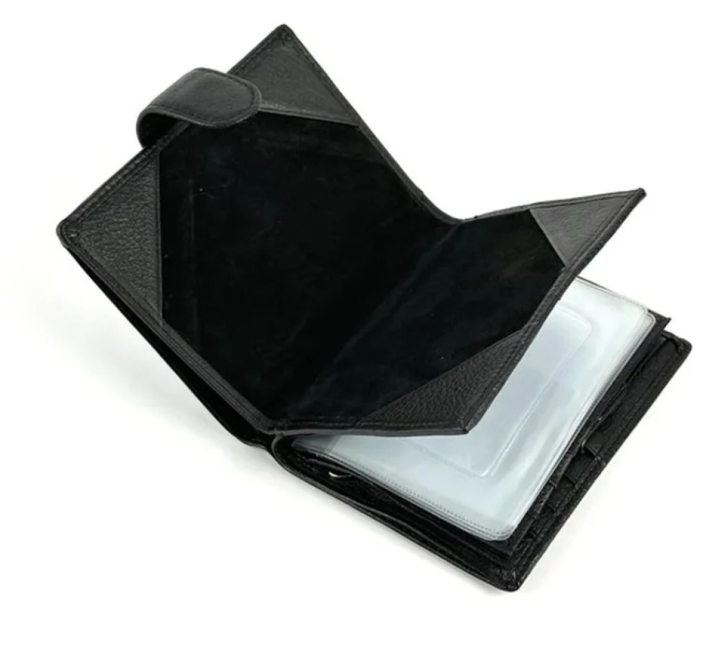 Шкіряне чоловіче портмоне з відділенням для паспорта, готівкових, пластикових карток, прозорих відділень для документів і монетниця на кнопці. Виконаний із якісної фактурної шкіри, Закривається на хлястик з кнопкою. Через розміри та функціональність, відмінно підійде для повсякденного носіння. Велику популярності має серед автомобілістів.