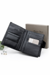 Чоловічий шкіряний гаманець- портмоне з відсіком для документів, чорний