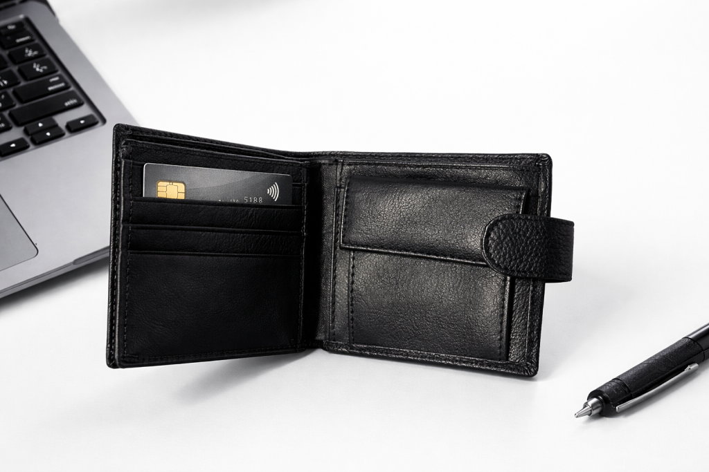 Функціональність: Гаманець має різні відділення для готівки, карточок, та інших особистих речей.