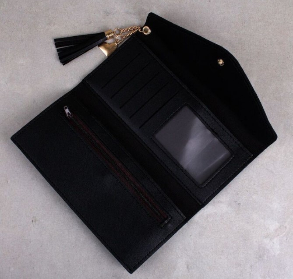 М'який жіночий повсякденний гаманець виготовлений з високоякісної штучної шкіри (PU). Тщательно пророблені шви додають охайності зовнішньому вигляду. Компактний і стильний, він ідеально підходить для зберігання необхідних засобів у повсякденному житті. Підходить для використання в сумочці або як клатч. Усередині три відділення для купюр, сім слотів для кредитних карток і одне відділення на блискавці для монет або грошей. Закривається на кнопку. Гаманець легкий і зручний, а його декоративні аксесуари додають йому унікальний і миленький вигляд. Розміри: 19 см x 9 см x 2,5 см. Вага: 195 грам