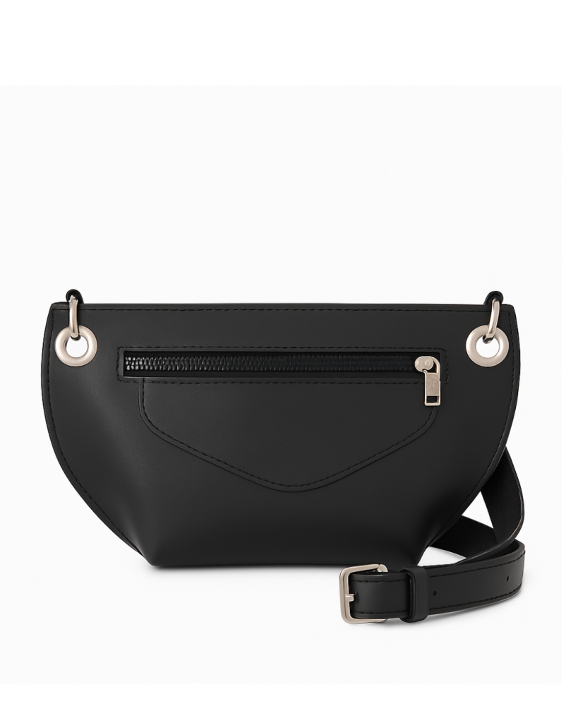 Бананка чорного кольору – елегантний аксесуар з одним відділенням, який стане доповненням до вашого стилю. Її розміри 23 х 14 х 1 см роблять її компактною та зручною для повсякденного використання.