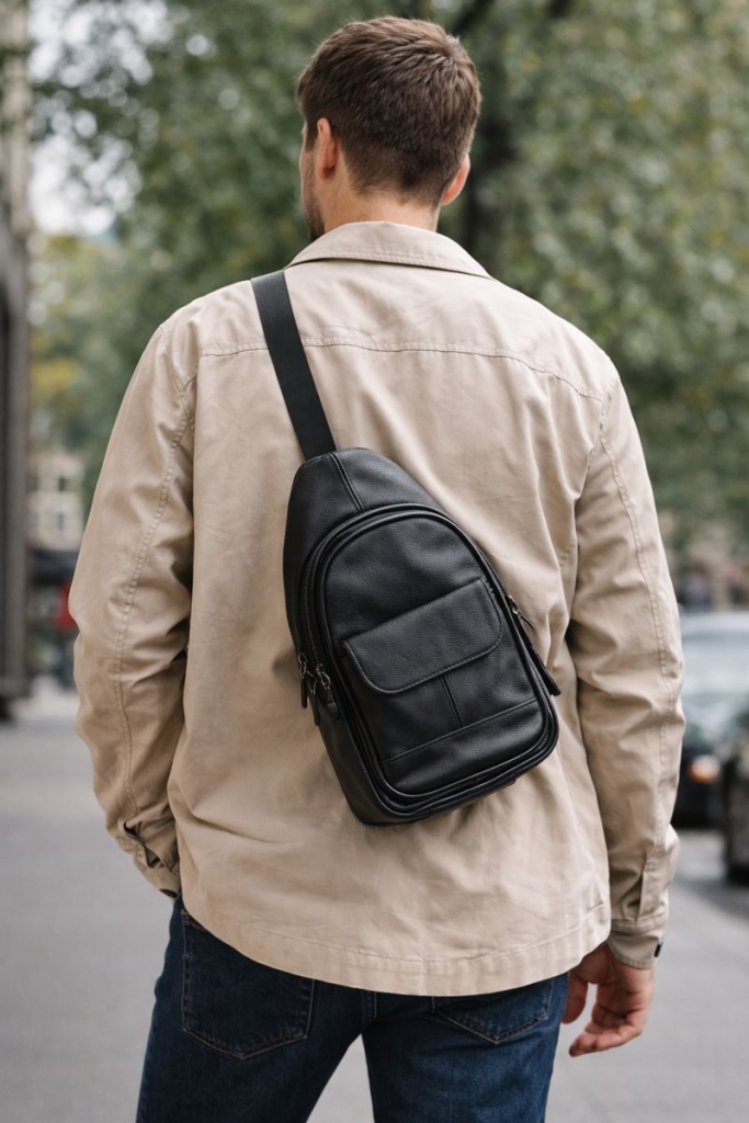 Шкіряний слінг через плече Lex, чорний