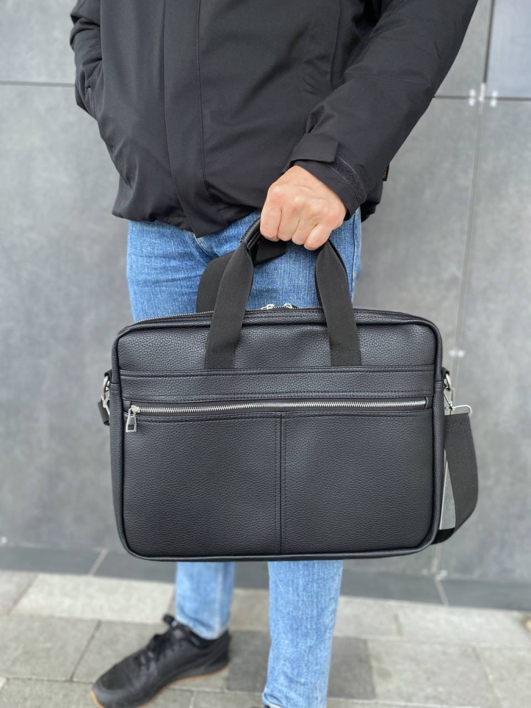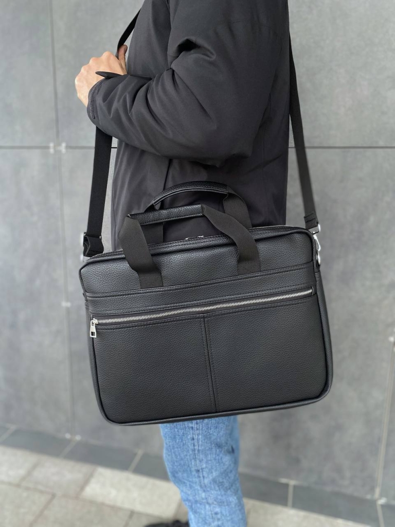 Сумка гарна, виглядає стильно, поверхня зі шкірозамінника аналогічна поверхні класичних сумок. Ноутбук поміщається добре. Дякую