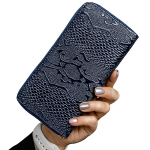 Жіночий гаманець з текстурованим принтом у вигляді змії, двома блискавками, відділеннями для карток та внутрішньою блискавкою, а також місцем для кріплення ланцюжка та використання як гаманця. Висота: 10 см Ширина: 20 см Глибина: 3 см