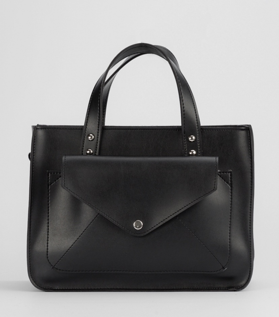 Жіноча чорна сумка тоут с клапаном Olie