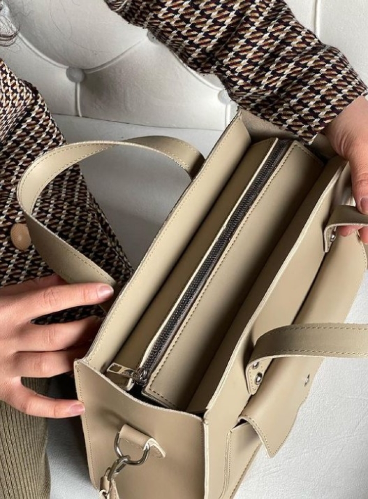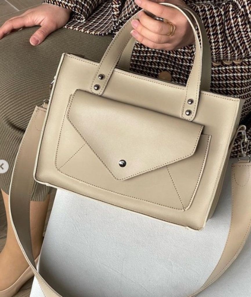Сумка доповнена зручною кишенею на передній панелі, яка не тільки додає декоративний елемент, але й надає зручне місце для швидкого доступу до дрібних предметів. Основне відділення сумки закривається на блискавку, забезпечуючи безпеку ваших речей.
