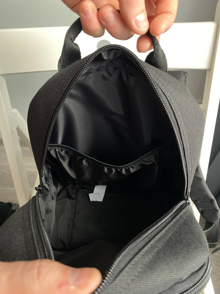Всередині є основне велике відділення, що вмістить книги, зошити та інше канцелярське приладдя. Крім основного відділу є кишеня на передній частині рюкзака та боковий відсік для пляшки з водою.