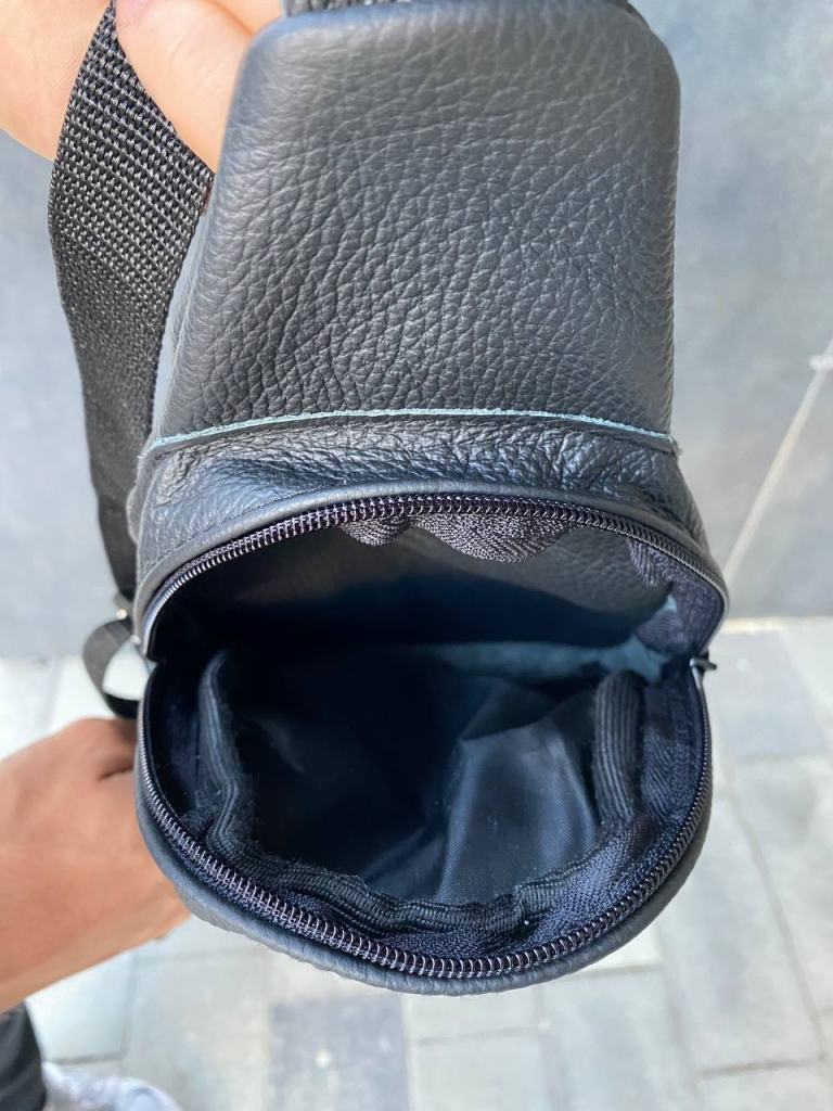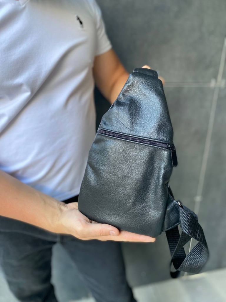 Мужская сумка «слингер» теперь в гладкой и зернистой коже флотар + объемные бегунки.