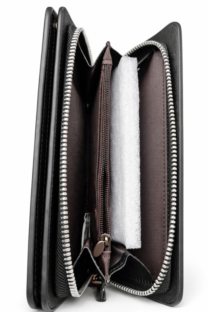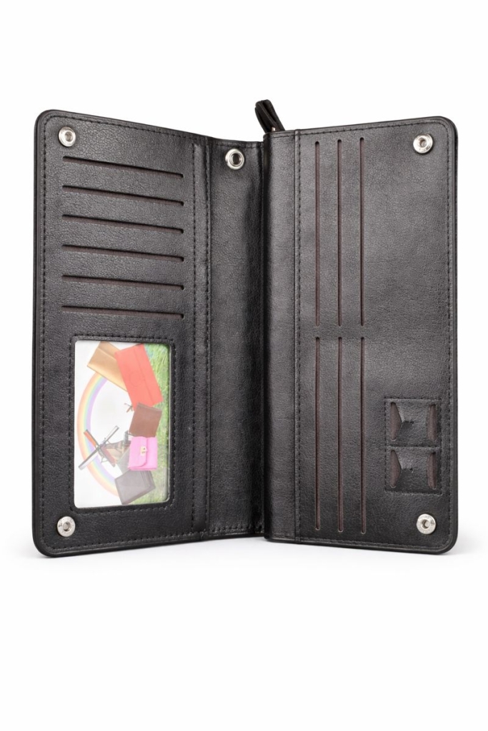 С таким клатчем все самые необходимые вещи будут под рукой: кредитки, визитки, ручки, деньги, банкноты, и даже телефон. Кошелек имеет 12 отделений. Вы сможете хранить документы, тех паспорт, водительские права — все, что нужно водителю. Изготовлен он из качественной и долговечной кожи, которая обладает высокой износостойкостью и приятна на ощупь.